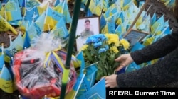 Этот мемориал на Майдане Незалежности стал по-настоящему народным символом войны. У него нет официального названия, он не санкционирован, но каждый день здесь появляются новые флажки, каждый из которых символизирует погибшего украинского военного.