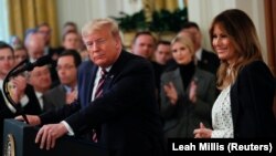 Трамп заявил, что три вакцины американского производства уже проходят клинические исследования и вскоре поступят на рынок. Конкретных дат он не назвал.