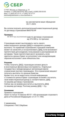 Собеседники Сибирь.Реалий говорят, что они заключали договоры со Сбером еще до войны. В итоге им выдали только вложенную сумму без процентов, прописанных в договоре.